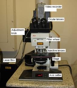 Confocal microscopy is a technique for obtaining high-resolution optical images. The key feature of confocal microscopy is its ability to produce in-focus images of thick specimens, a process known as optical sectioning. Images are acquired point-by-point and reconstructed with a computer, using lasers to image the specimen one plane at a time. This allows for the focus of the specimen at many layers. Thee directions are for a Leica confocal microscope.